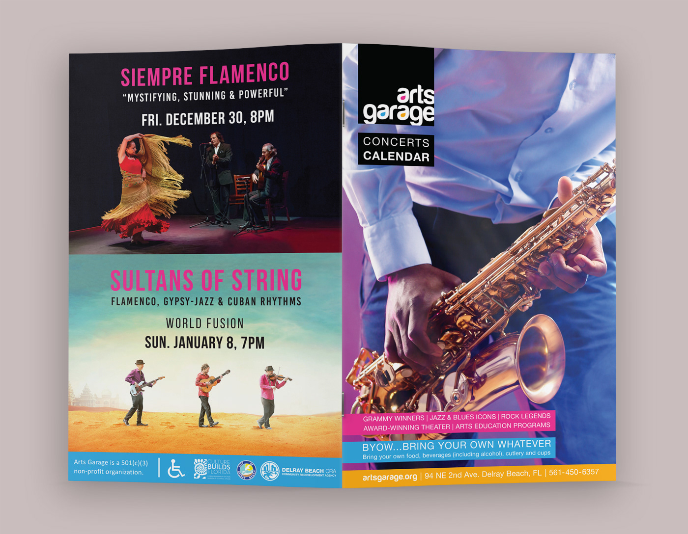 This was a weekly calendar for concerts that I was tasked with designing, I updated the acts every week and created a new cover monthly.